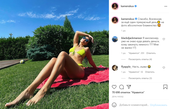 34-летняя Каменских в купальнике похвасталась бесконечными ногами на газоне (фото)