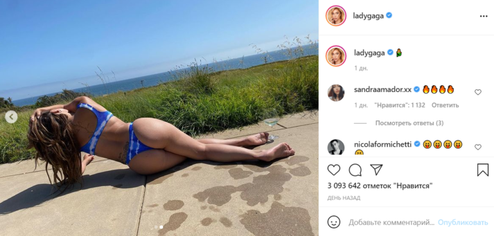 Публикация Гаги набрала почти три миллиона лайков и восхитила ее поклонников. «Обожаю тебя», «Настоящая Русалка», «Мои глаза благословились», «Шикарное тело», «Какая прекрасная фигура!», «Королева!», «Нереальная красотка», «Самая красивая женщина в мире», — комментировали подписчики.
