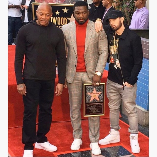Поддержать 50 Cent пришли его друзья – Эминем и Dr.Dre. В торжественной речи исполнитель признался, что без поддержки товарищей вряд ли смог бы состояться в качестве знаменитости, а значит, эта звезда носит сразу три имени, передает его слова Billboard.