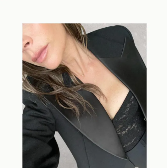 46-летняя основательница модной империи Виктория Бекхэм примерила черный тотал-лук, состоящий из укороченного смокинга и свободных классических брюк. Образ она дополнила пикантным полупрозрачным кружевным корсетом, который плотно стиснул ее грудь. Виктория продемонстрировала наряд на двух снимках, а также записала видео.