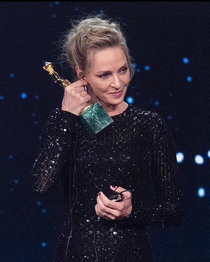 Звезда культовых фильмов Квентина Тарантино, как «Криминальное чтиво» и «Убить Билла»), Ума Турман получила специальный приз за достижения в области кинематографа на 64-й церемонии David di Donatello, которая прошла в Риме.