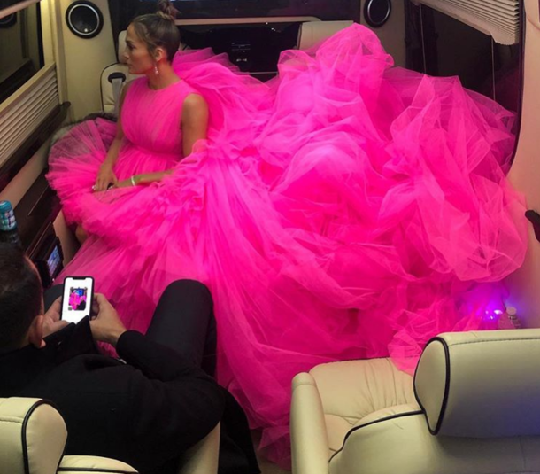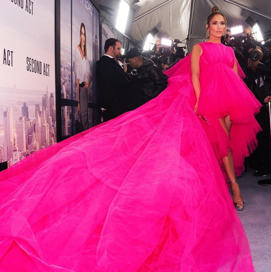 Главная звезда кинокартины появилась на мероприятии в наряде, в котором певица и актриса не могла остаться незамеченной. Джей Ло появилась на премьере в пышном ярко-розовом платье от Giambattista Valli и стала главной звездой красной ковровой дорожки. Свой образ она дополнила серебристыми босоножками.