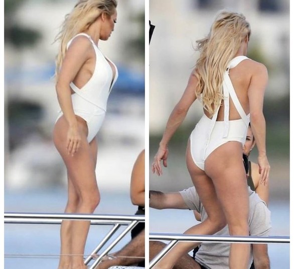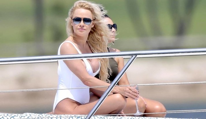 52-летная Памела Андерсон показала пышную грудь в белом купальнике на яхте