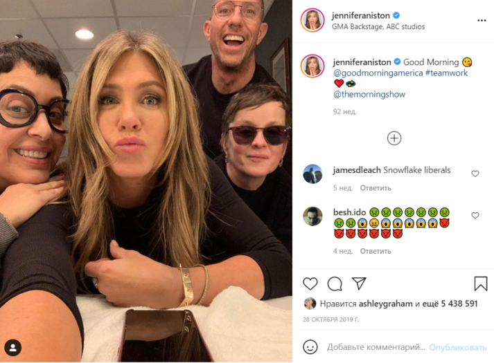 Также Энистон упомянула, что занимается пилатесом и круговыми кардио-тренировками, такими как бег и прыжки на батуте.