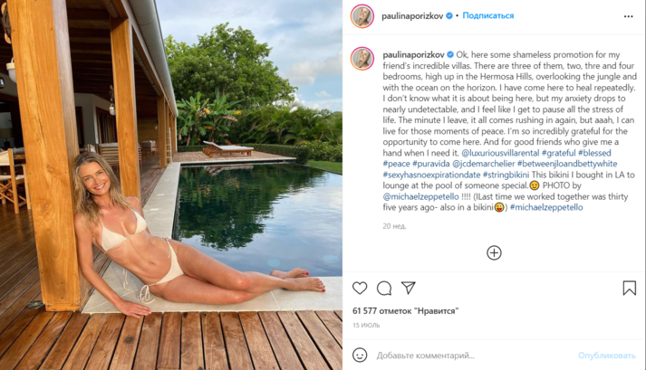 Американская супермодель, актриса и писательница чешского происхождения Паулина Поризкова показала фото в нижнем белье и взволновала поклонников. Соответствующее фото появилось на ее странице в Instagram.