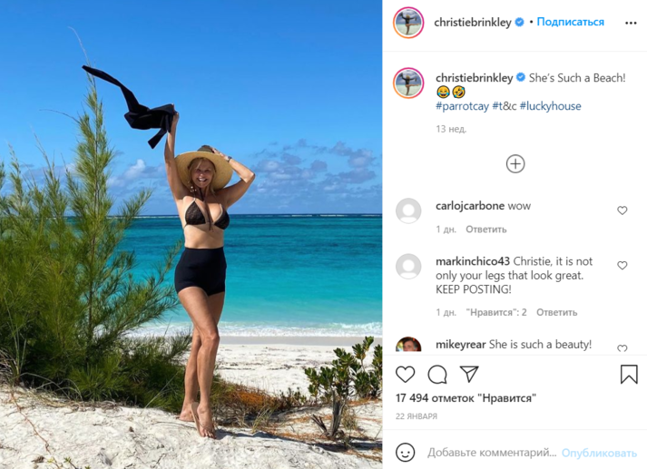 Американская фотомодель и актриса Кристи Бринкли объяснила необходимость фотографий в купальниках. Ее цитирует Fox News.