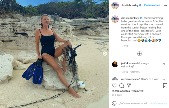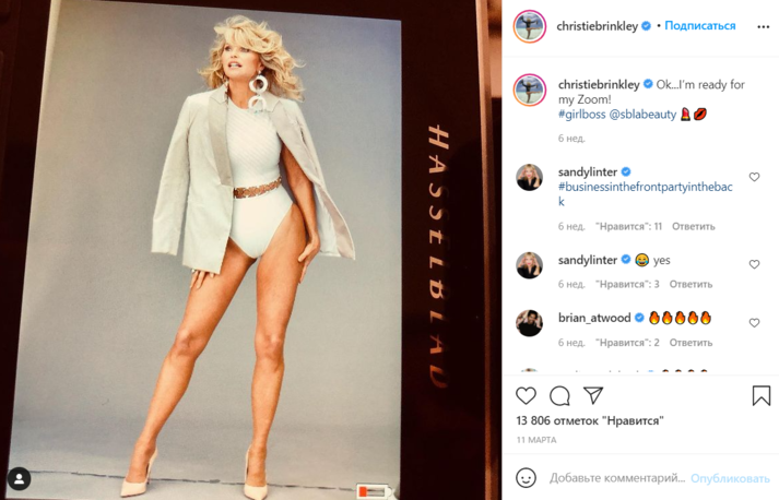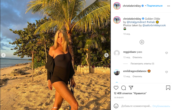 В интервью для издания 67-летняя знаменитость рассказала, что часто снимается в бикини и публикует кадры в Instagram. Например, она позировала в слитном купальном костюме синего цвета во время отпуска. Также Бринкли разместила фото, на котором она задирает ногу в голубых мини-шортах, сидя в надувной лодке. По словам героини материала, женщины ее возраста часто пишут ей слова благодарности за то, что она не стесняется делиться подобными снимками.