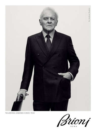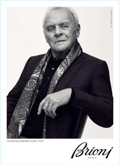 Фотографом черно-белой фотосессии, где Энтони Хопкинс демонстрирует классические костюмы от Brioni, выступил Грегори Харрис. За основу кампании была взята идея о возрождении многолетних традиций модного дома. До Хопкинса Brioni рекламировал другой знаменитый актер – 68-летний Сэмюль Л. Джексон, а в 2016 году – участники культовой группы Metallica.