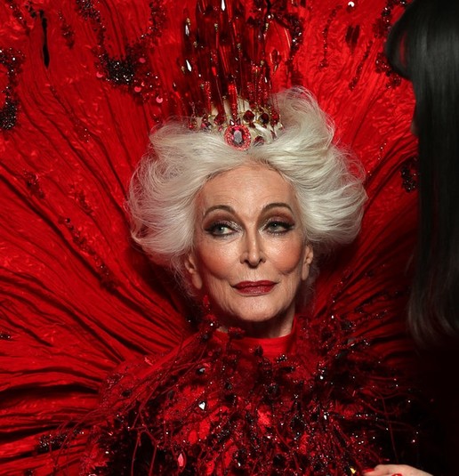 А что касается феноменальной Кармен, она на Неделе высокой моды выступила дважды: первый проход по подиуму в образе богатой пенсионерки был на показе Vetements. За последние годы Делль' Орефиче приняла участие в немалом количестве дефиле и модных съемок, и все же каждое ее появление приводит публику в восторг. Вот как американская модель и актриса (а в прошлом — балерина), занесенная в Книгу рекордов Гиннесса как подиумная модель с самой долгой карьерой, выглядит на модных вечеринках, где она тоже частый гость.