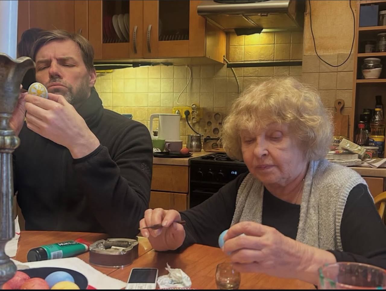 У своєму блозі Ада Роговцева опублікувала допис зі світлинами, де вона з рідними та близькими фарбує та розмальовує яйця-крашанки до Великодня.