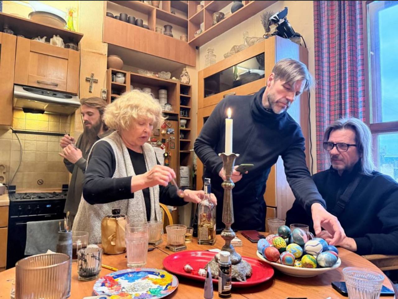 На фото, які опублікувала акторка, вона показалася зі своїм правнуком, близькими та друзями. На кадрах артистка та інші зосереджені на фарбуванні крашанок. На окремих фото можна побачити вже готові крашанки різноманітних кольорів з оригінальним орнаментом.