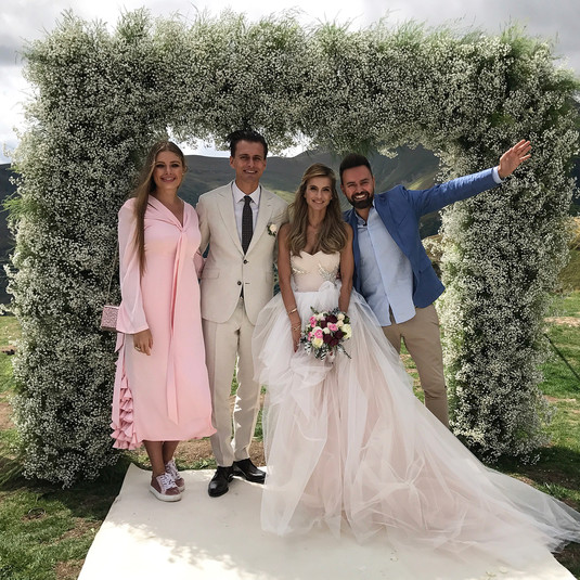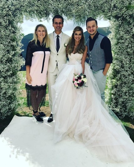 На торжество молодожены пригласили только самых близких родственников и друзей, среди которых, в частности, и звезды: режиссер Алан Бадоев, певцы Монатик и Макс Барских. Побывал на свадьбе ведущего также и Вахтанг Кикабидзе.