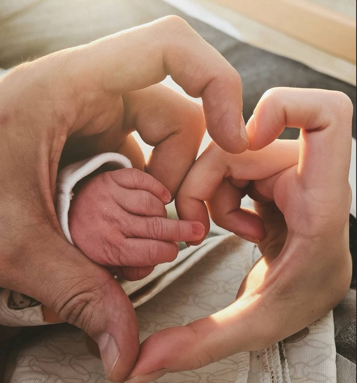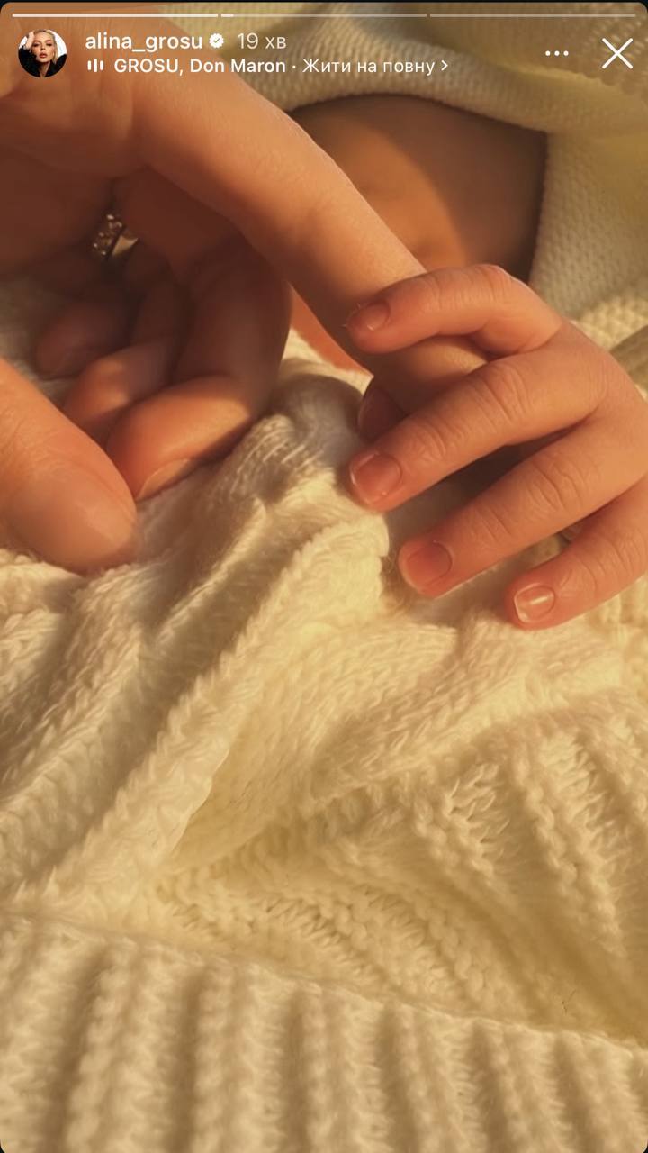 До свого допису Аліна Гросу додала перше сімейне фото з сином та чоловіком. На світлині зображено руки співачки, її чоловіка та їхнього сина.