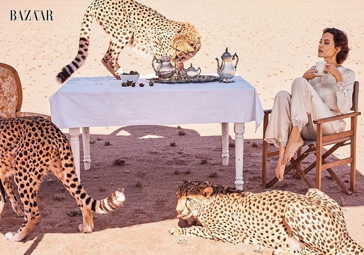 Знаменитая голливудская актриса Анджелина Джоли появилась на обложке нового номера журнала Harper's Bazaar. В самом издании также появится её фотосессия с живыми леопардами.