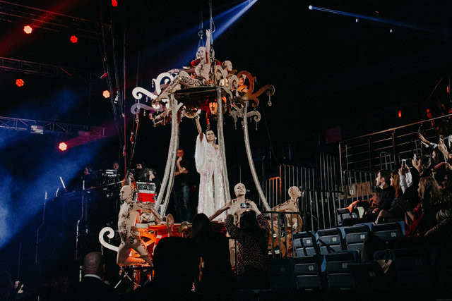 Ани Лорак на люстре и в прозрачной ванной. Певица отыграла эффектное шоу в Минске