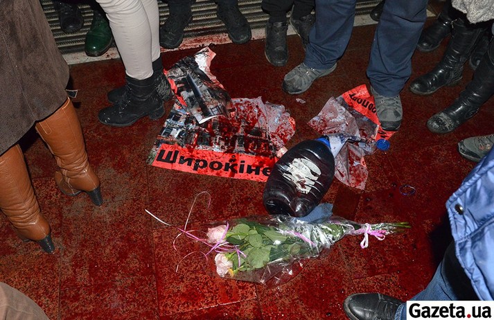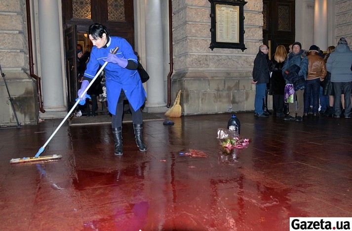 Активисты разлили свиную кровь на входе в оперный театр, чтобы помешать зрителям попасть внутрь