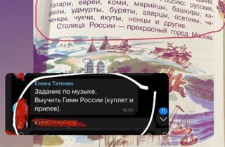 Телеведучий додав скріншот з шкільного чату, у якому написано домашнє завдання– вивчити приспів та куплет гімну Росії