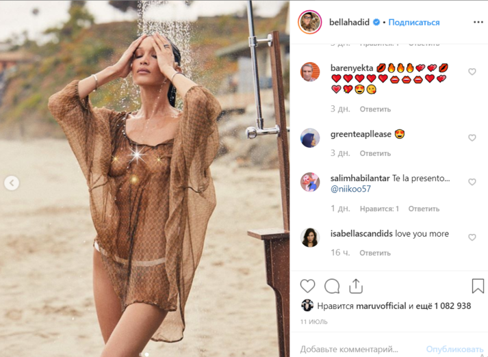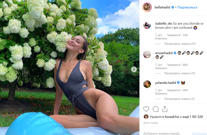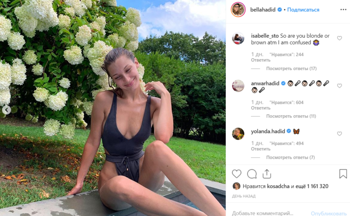 Поклонники пришли в восторг от дерзкого образа Беллы и ее стройной фигуры. «Ох, эта талия!», «Мне нужен этот купальник!», «Красивый ангел», «Хочу такое же тело!», «Королева», – прокомментировали подписчики в «Инстаграме».