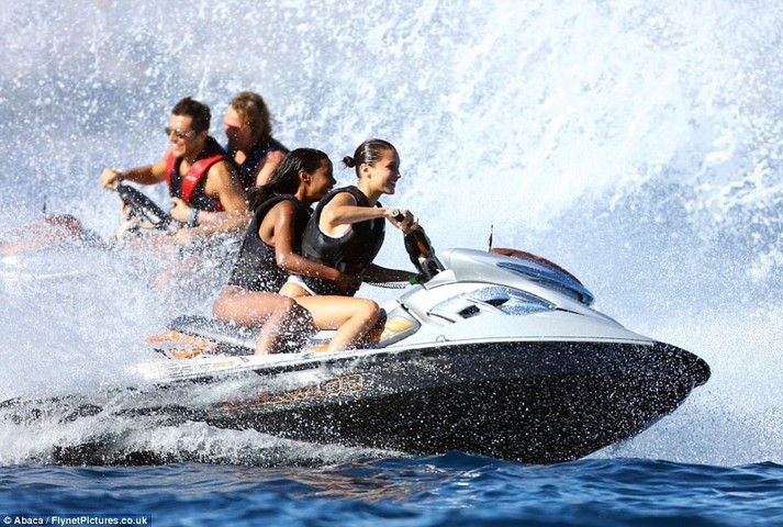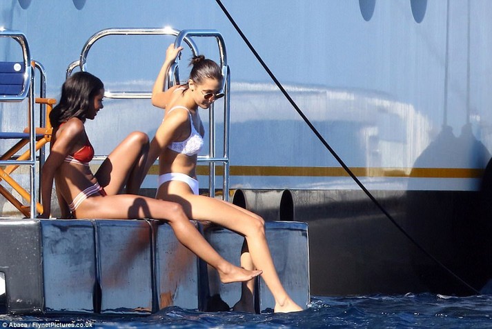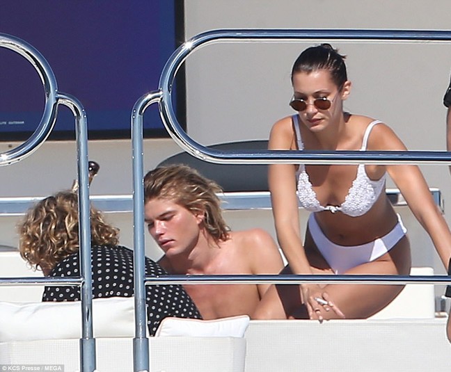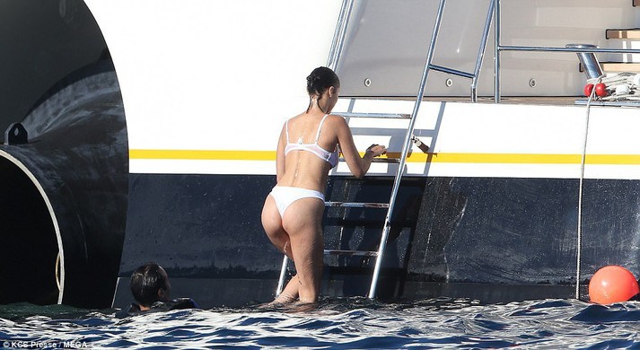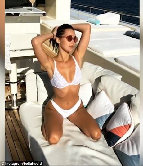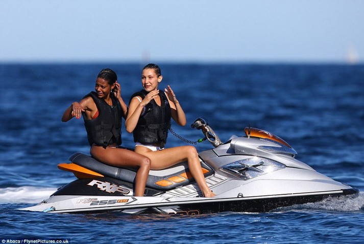 Модель Белла Хадид в перерыве между появлениями на красной дорожке развлекается в море.