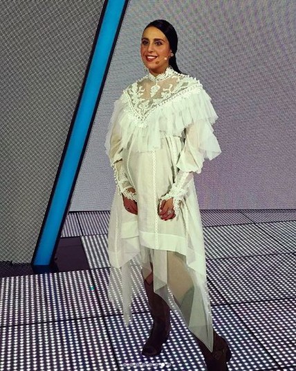 Вчера состоялся второй полуфинал национального отбора на международный песенный конкурс «Евровидение-2018». Кроме ярких номеров участников отбора, внимание телезрителей привлекла член жюри и победительница «Евровидения-2016» певица Джамала. Беременная артистка появилась в роскошном белоснежном наряде с вышивкой, который выгодно подчеркивало беременный животик артистки.