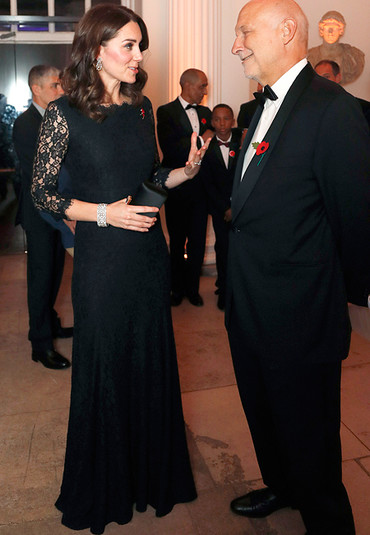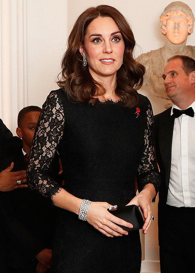 Герцогиня Кембриджская устроила гала-ужин в оранжерее Кенсингтонского дворца в поддержку Национального центра для детей и семей имени Анны Фрейд - Anna Freud Centre, покровителем которого является. Для выхода она выбрала черный кружевной наряд с чуть расклешенным подолом, прозрачными рукавами и открытой спиной авторства бренда Diane von Furstenberg. В нем же она блистала на театральном вечере Royal Variety Performance в лондонском зале Palladium. Это мероприятие считается в Англии одним из самых престижных в году.