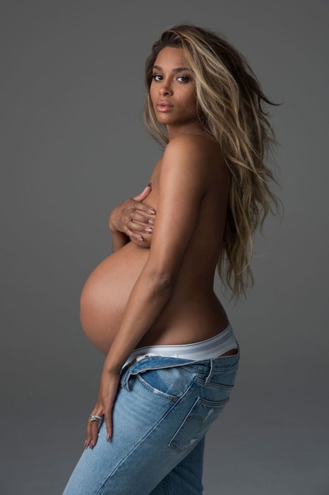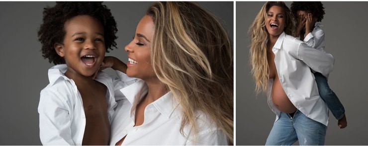 Беременная певица Сиара устроила обнаженную фотосессию с сыном и мужем