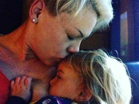 Повторять традиционную позу в стиле голых снимков Деми Мур, Бритни Спирс и прочих звезд Пинк не стала, вместо этого подключив к созданию фото свою пятилетнюю дочь Уиллоу Харт, пишет popcornnews.