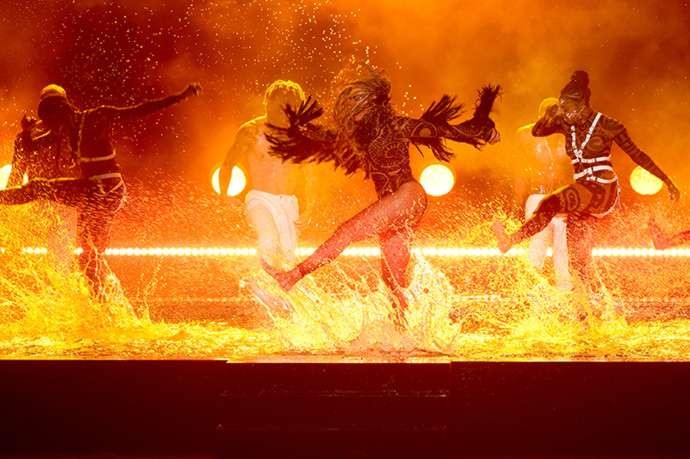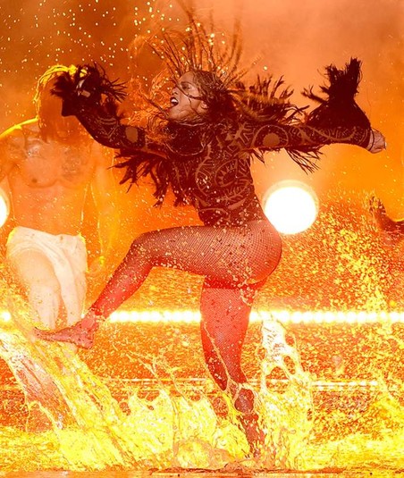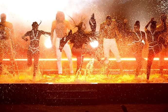 Под песню Freedom музыканты устроили фаер-шоу со спецэффектами, потом на сцену обрушился водопад, в брызгах которого шоу-балет с исполнителями показали этнические танцы. Все шоу было продумано вплоть до мелких деталей образов: Бейонсе предстала перед публикой в комбинезоне с бахромой и с прической в виде афрокосичек.