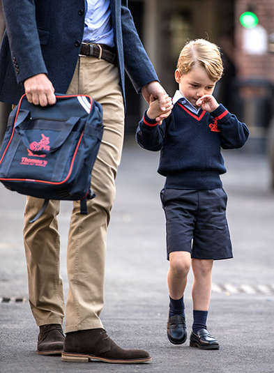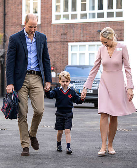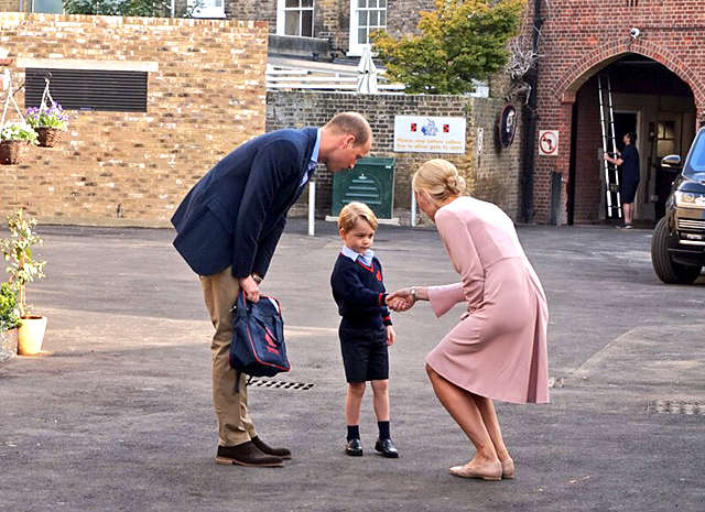У ворот школы Thomas's School принцев Уильяма и Джорджа встретила директор школы Хелен Хаслем, которую Джордж поприветствовал рукопожатием, после чего они вместе отправились в класс.
