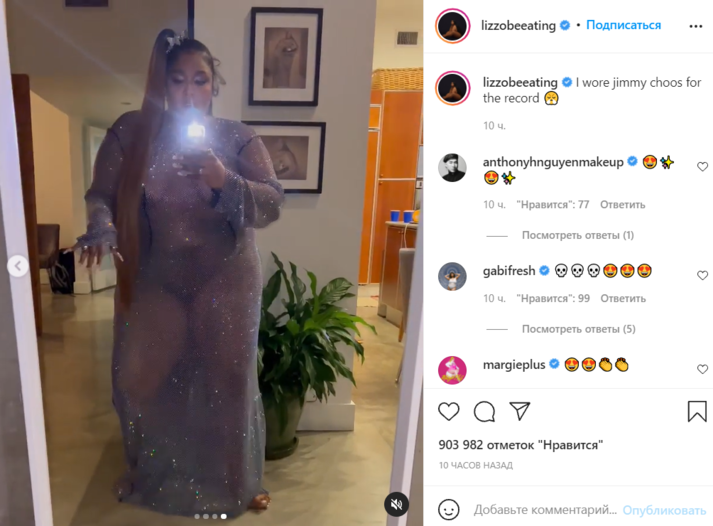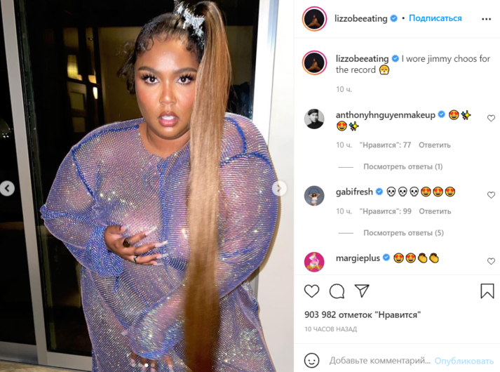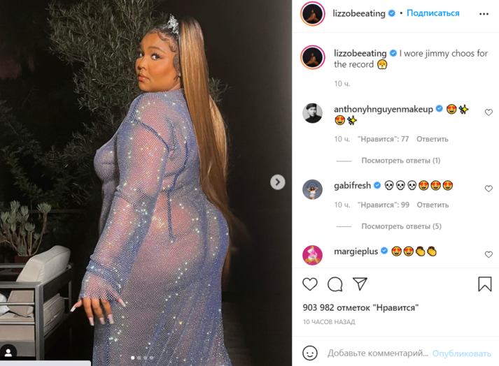 Читатели издания не оценили наряд Lizzo, о чем принялись писать в многочисленных комментариях под кадрами. «Продвигать идеи бодипозитива – это круто, но необязательно ходить голой», «Lizzo, кто тебе сказал, что это красивый образ?», «У меня просто нет слов», «Если честно – это просто отвратительно», «Привлекает внимание всеми способами», – высказывались юзеры.