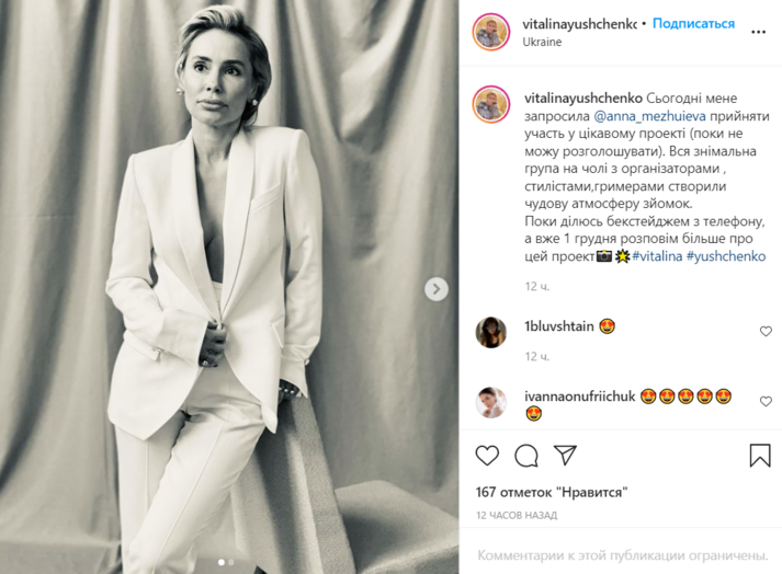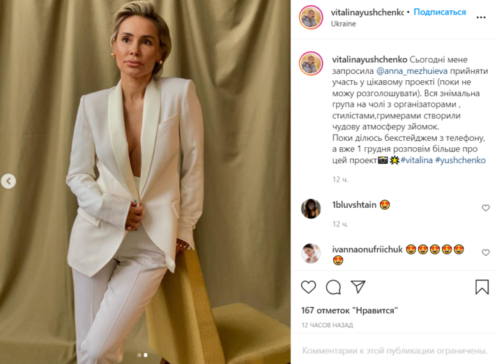 Ющенко уточнила, что приняла участие в «интересном проекте», подробности которого пока не может разглашать.