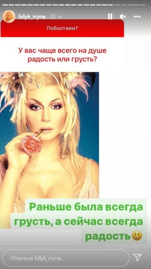 Певица Ирина Билык в сторис своей страницы в Инстаграм ответила на вопросы подписчиков. Рассказывая о себе, артистка засветила несколько архивных фото и сделала ряд откровенных признаний. Когда Билык спросили, общается ли она сейчас с бывшем мужем, от которого родила старшего сына Глеба, певица ответила, что сын общается с папой, а она давно – нет. На странице в соцсети самого Глеба нет ни одного снимка ни мамы, ни папы.
