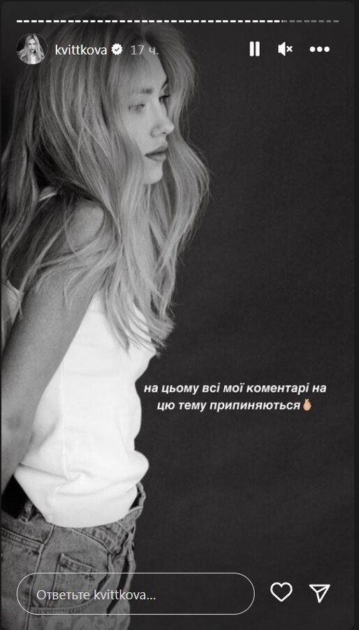 «Ми не разом. Не буде брудної білизни та пошуків винних. У нас росте син і ми робимо все, щоб залишитися просто в здорових батьківських стосунках. Я буду вдячна за розуміння та повагу до рішення, яке ми прийняли. Прийняли не для вас, а для себе та свого подальшого життя», – написала Квіткова в Інстаграм.