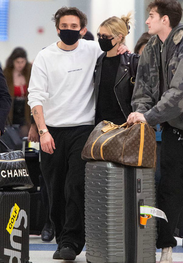 Недавно старший сын Дэвида Бекхэма Бруклин вместе со своей девушкой Николой Пельтц надели одинаковые стилизованные маски от коронавируса — и, кстати, поступили весьма благоразумно. Бруклин предстал в кадре в белом джемпере и черных спортивных штанах. Никола также выбрала сдержанный наряд для поездки. Она надела черной топ и кожаную куртку. Облегающие темные брюки эффектно завершили образ модели.