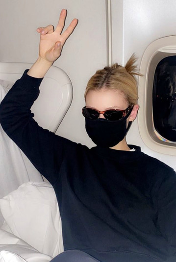 Пельтц поделилась с поклонниками снимком, сделанным на борту самолета. К слову, на ее месте могла позировать любая другая блондинка — темные солнцезащитные очки и плотная маска позволяли рассмотреть только брови, лоб, фрагмент спинки носа и милое ухо.