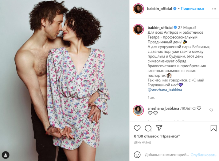 Бабкин называет жену своим Ангелом и маяком. Музыкант не жалеет о том, что они со Снежаной вынесли свое личное на люди. По словам Сергея, он кардинально изменил жизнь и это его бесценный опыт, о котором он может смело говорить.