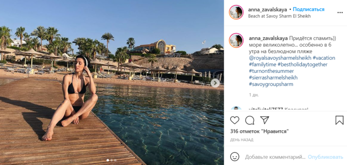 Участница дуэта The Alibi Sisters Анна Завальская, которая отдыхает в Египте, засыпала Сеть снимками с отдыха.
