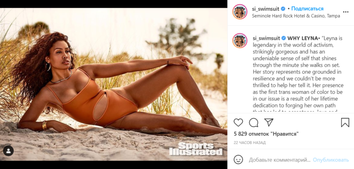 «Присутствие Лейлы в качестве первой чернокожей женщины-трансгендера в нашем журнале является результатом ее преданности своему делу. Она олицетворяет право каждого человека любить себя настоящего и быть тем, кем он хочет быть. Мы понимаем, как история Лейлы может вдохновить других», — гласит подпись к посту.