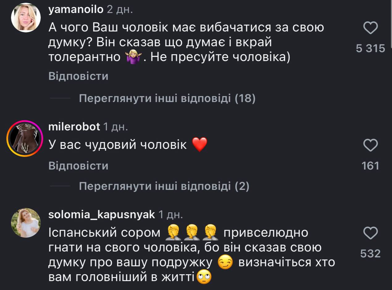 У коментарях під дописом із вибаченням Олі Полякової, користувачі навпаки стали на захист її чоловіка. Вони зауважили, що співачка не мала вибачатися, адже Буряковський сказав правду: