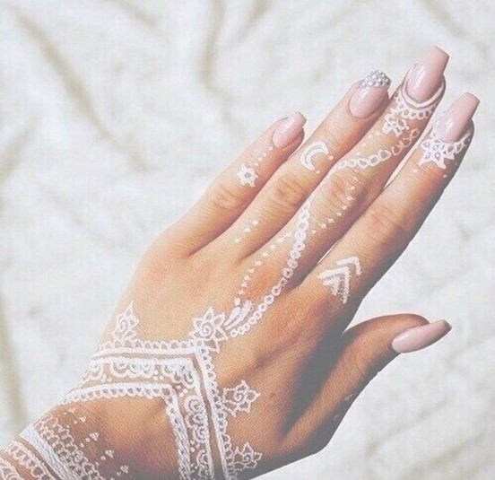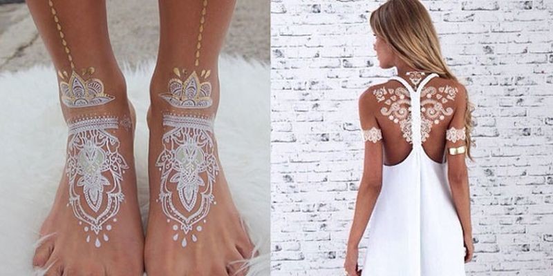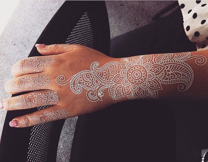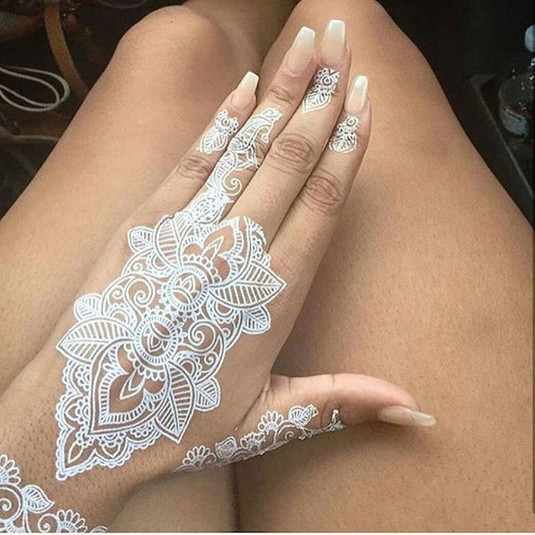 Рисунки на коже белой хной, которые вызывают в памяти ажурные узоры изящных кружев