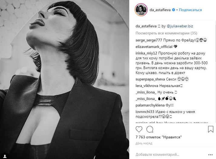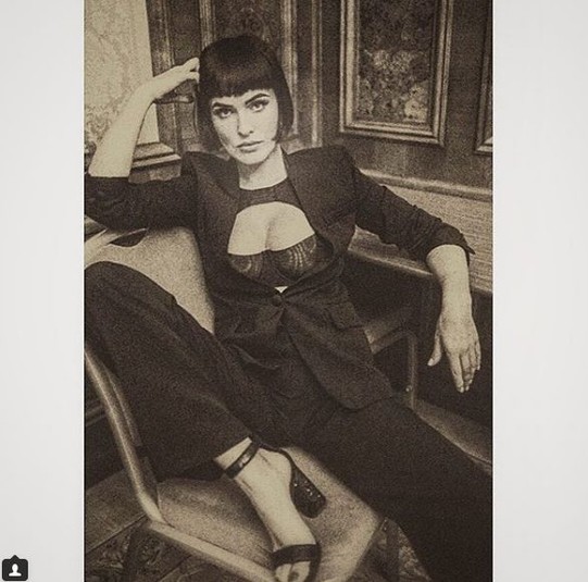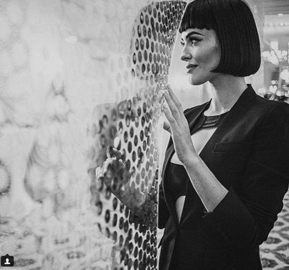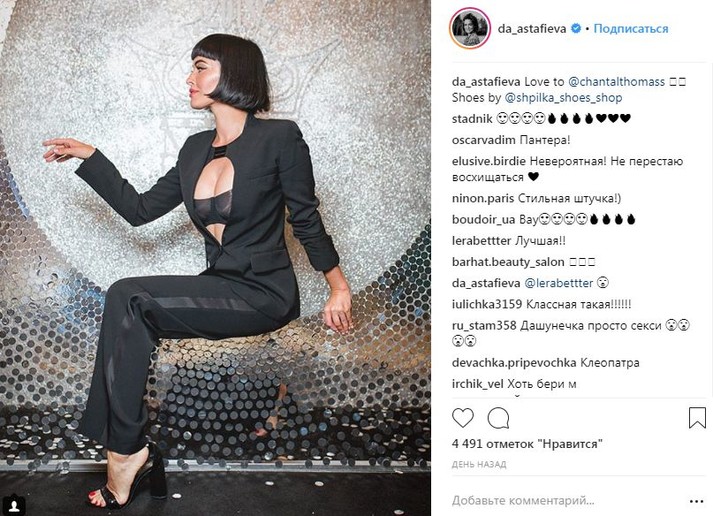 На них Даша Астафьева запечатлена в новом образе: каре, густая челкой, черный костюм и роскошное декольте, которое сводит с ума всех мужчин.