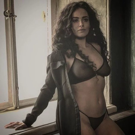 На снимках звезда запечатлена в полупрозрачном нижнем белье и чувственных позах.