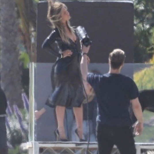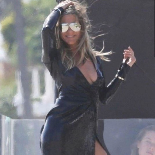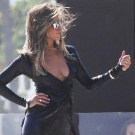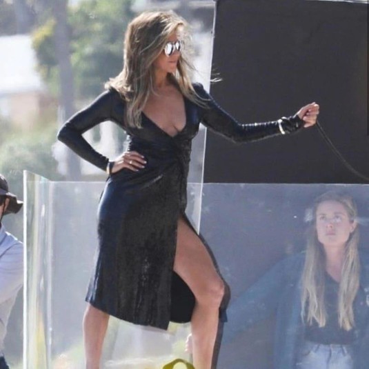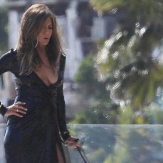 Декольте и латекс: Дженнифер Энистон заметили на съемках в Малибу