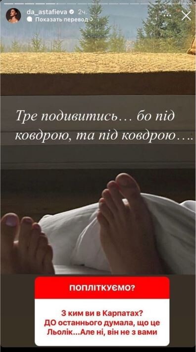 Телеведуча, модель та волонтерка Даша Астафʼєва на днях вперше розповіла, як зустріла кохання під час війни. «Мабуть, у мене є така риса, що все не так, як у людей. Під час війни всі розлучаються, а я навпаки – зустріла кохання свого життя і дуже радію цьому! Це зараз єдине, що мене рятує – близькі і родина», – зізналася Астафʼєва. Співачка навіть трохи описала свого коханого. За її словами, він має зелені очі та високий зріст. А ось імʼя свого обранця Даша залишила в таємниці, але час від часу викладає спільні фото в Інстаграм.