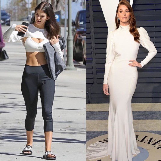 Фотографы заметили подругу голливудского актера Леонардо Ди Каприо модель Камилу Морроне на улице с обнаженным прессом. Девушка вышла в коротком спортивном топе, в обтягивающих штанах и открытых сланцах. Вероятнее всего, девушка шла на урок пилатеса, которым она регулярно занимается, и подготовилась еще дома, чтобы не переодеваться в классе.