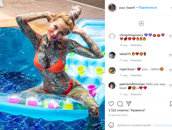 35-летняя Харуэтай Пьянкаев покрыла 98% своего тела татуировками в виде драконов, цветов и других красочных узоров. Однако в Сети ее постоянно называют сумасшедшей, отвратительной и грязной. А еще больше расстраивает девушку из Таиланда то, что ее принимают за наркоторговца, сообщает Daily Mail.