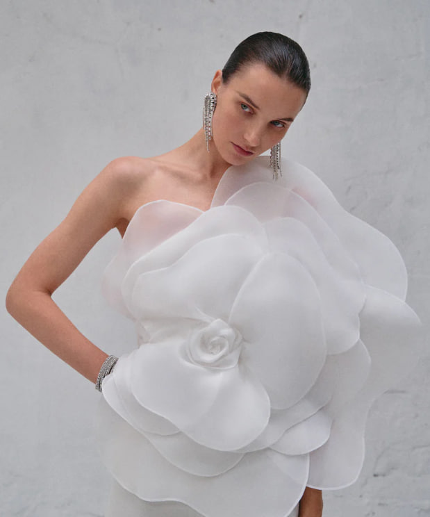 На фото вона у сукні Camellia Lisa, виконаній із 100% шовкового сатину та прикрашена квіткою з тканини (80% поліестер, 20% віскоза). Вартість сукні 1300 євро.