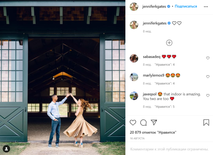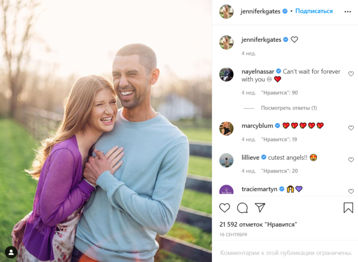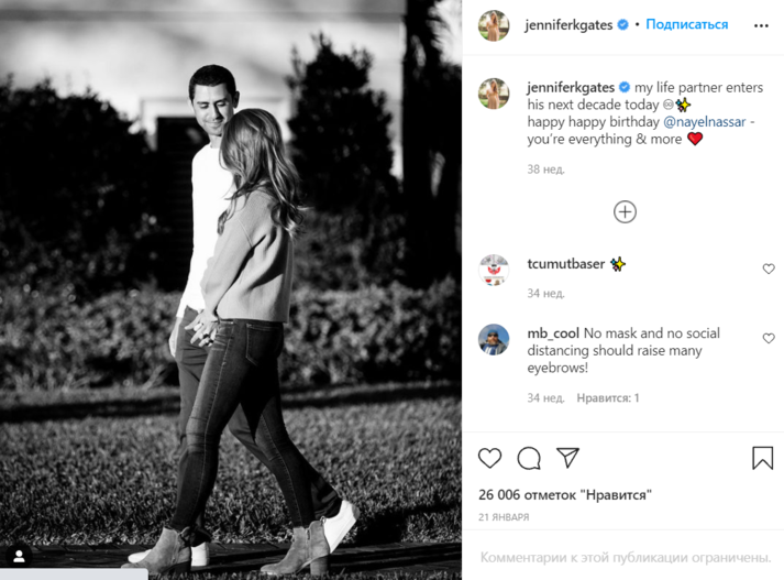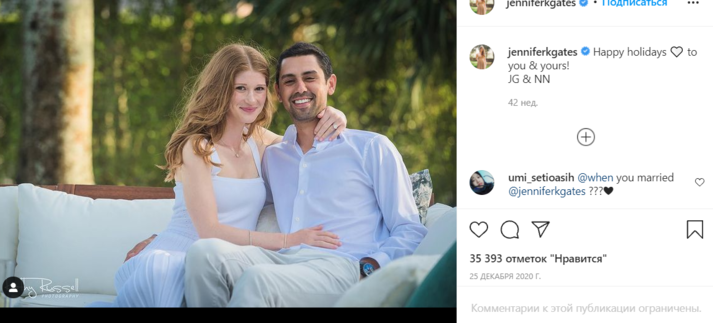 23-летняя Дженнифер Катарина Гейтс, дочь одного из самых богатых людей мира, основателя Microsoft Билла Гейтса, вышла замуж. Ее возлюбленным стал египетский спортсмен Наэль Нассара. 15 и 16 октября состоялись сразу две свадебные церемонии: одна − в мусульманских традициях для близких, вторая − более масштабная на 300 гостей, где уже среди приглашенных были политики и знаменитости.