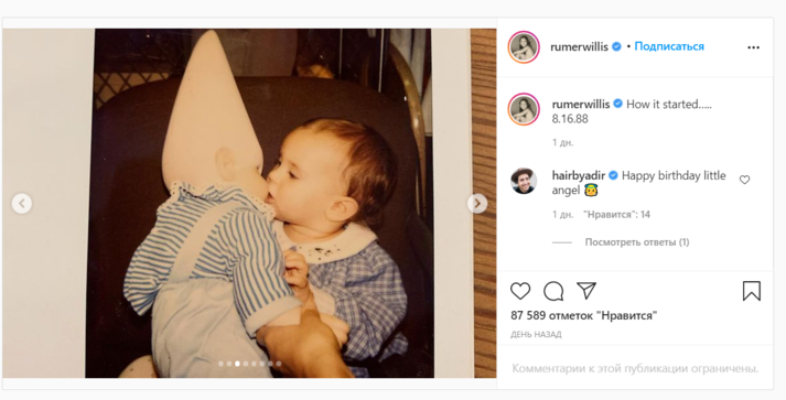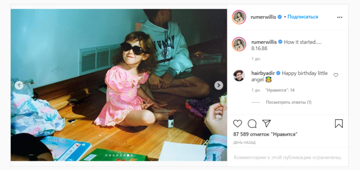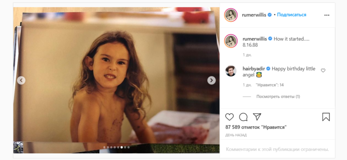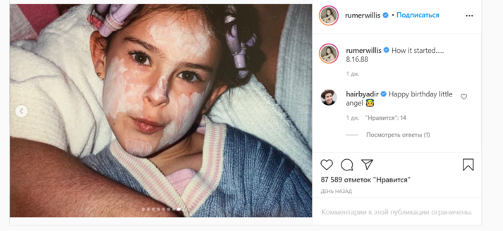 Артистка поделилась кадрами в честь своего дня рождения. «Как это начиналось. 8.16.88», — написала она.