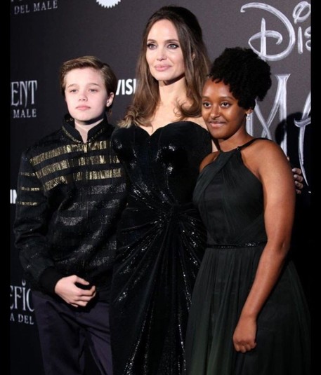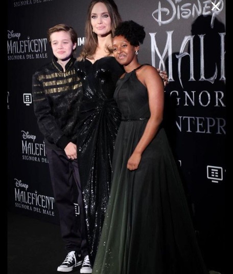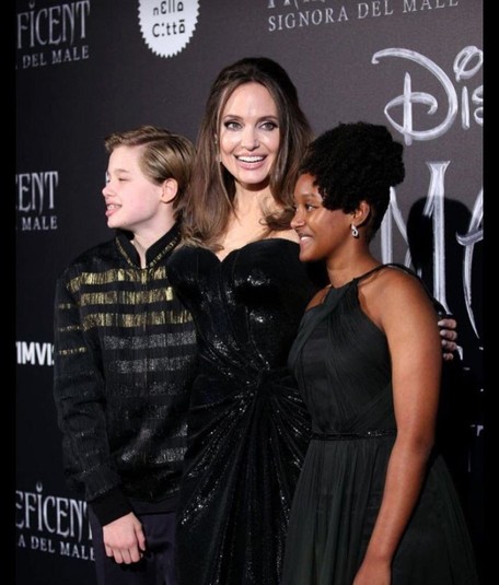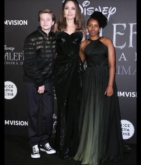 Анджелина Джоли продолжает свой мировой промотур с фильмом «Малефисента: Владычица тьмы». На днях Джоли добралась до Рима, где вышла на красную дорожку с дочерьми: 13-летней Шайло и 14-летней Захарой. Старшая девочка блистала на премьере в вечернем платье с оттенком зеленого и эффектом омбре. Она улыбалась и даже не хотела покидать дорожку.